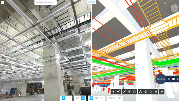 我們的BIM團(tuán)隊(duì)與項(xiàng)目團(tuán)隊(duì)緊密協(xié)作,將最新的BIM管理平臺(tái)應(yīng)用于項(xiàng)目實(shí)施。平臺(tái)集BIM、數(shù)字孿生與AI于一體,通過全景相機(jī)與BIM技術(shù)生成項(xiàng)目數(shù)字孿生空間,讓項(xiàng)目團(tuán)隊(duì)能直觀感受設(shè)計(jì)方案效果,實(shí)現(xiàn)設(shè)計(jì)與施工的無縫銜接;借助分屏展示不同時(shí)間點(diǎn)畫面的功能,可實(shí)時(shí)驗(yàn)證施工效果并進(jìn)行時(shí)間跨度比對,從而實(shí)現(xiàn)項(xiàng)目進(jìn)度、質(zhì)量與安全的可溯可控
