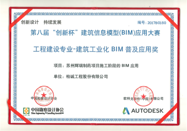 近期,我司蘇州輝瑞制藥項目施工階段的BIM應(yīng)用,在第八屆“創(chuàng)新杯”BIM應(yīng)用大賽中表現(xiàn)優(yōu)秀,喜獲工程建設(shè)專業(yè)--建筑工業(yè)化BIM“普及應(yīng)用獎”。