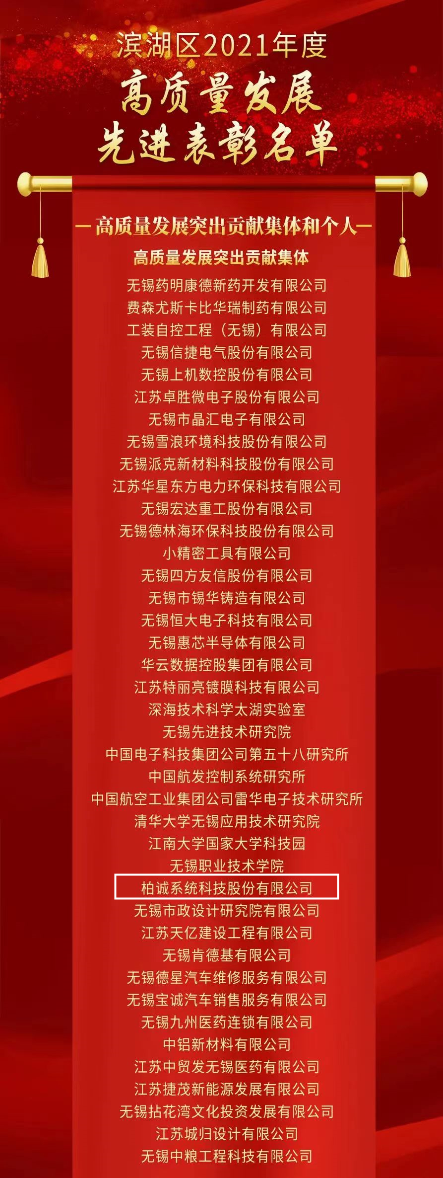 2022年5月4日,無(wú)錫市濱湖區(qū)區(qū)委區(qū)政府召開全區(qū)2021年度綜合考核總結(jié)表彰大會(huì),通報(bào)全區(qū)2021年度綜合考核(評(píng)價(jià))結(jié)果,對(duì)在區(qū)年度考核和一季度”擔(dān)使命作貢獻(xiàn)“季季評(píng)中表現(xiàn)出色的先進(jìn)集體和個(gè)人進(jìn)行表彰。BOTH憑借在推動(dòng)和服務(wù)高質(zhì)量發(fā)展中取得的顯著成效,獲評(píng)濱湖區(qū)2021年度”高質(zhì)量發(fā)展突出貢獻(xiàn)集體“。
