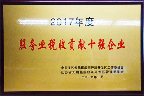 2018年3月,公司榮獲江蘇省蠡園經(jīng)濟(jì)開發(fā)區(qū)2017年度“服務(wù)業(yè)稅收貢獻(xiàn)十強(qiáng)企業(yè)”稱號。