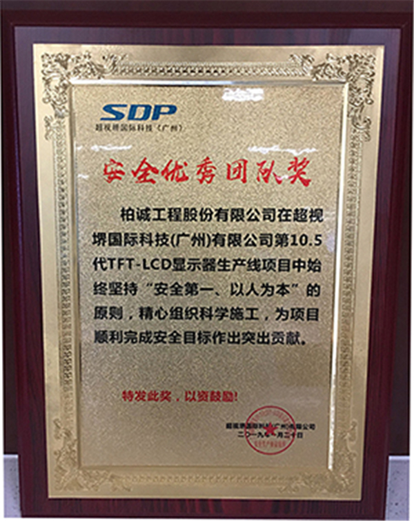 我公司承建的超視堺國(guó)際科技(廣州)有限公司增城817建廠(chǎng)專(zhuān)案項(xiàng)目開(kāi)工至今,安全工作高效,實(shí)現(xiàn)了“安全零事故”目標(biāo),因此業(yè)主方廣州超視堺國(guó)際科技有限公司向我公司SDP項(xiàng)目部頒發(fā)了“安全優(yōu)秀團(tuán)隊(duì)獎(jiǎng)”予以表彰,同時(shí)項(xiàng)目安全主管張高飛獲得“安全生產(chǎn)先進(jìn)個(gè)人”證書(shū)。