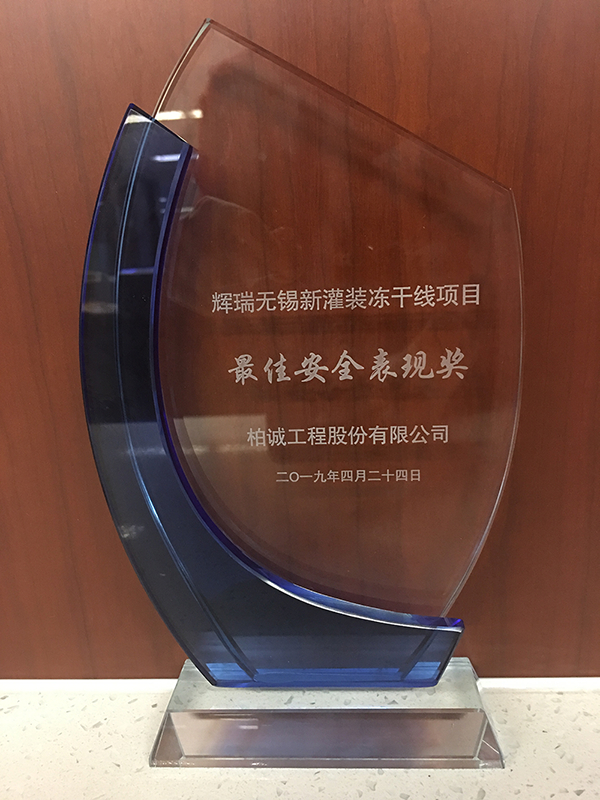 2019年4月,公司在輝瑞無(wú)錫新灌裝凍干線項(xiàng)目中榮獲“最佳安全表現(xiàn)獎(jiǎng)”獎(jiǎng)杯。