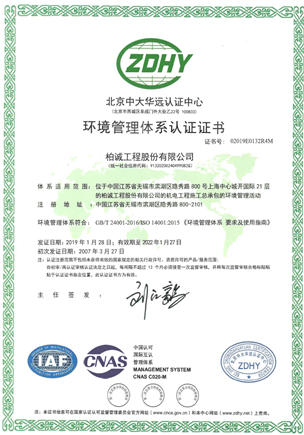 ISO environmental management system certificate