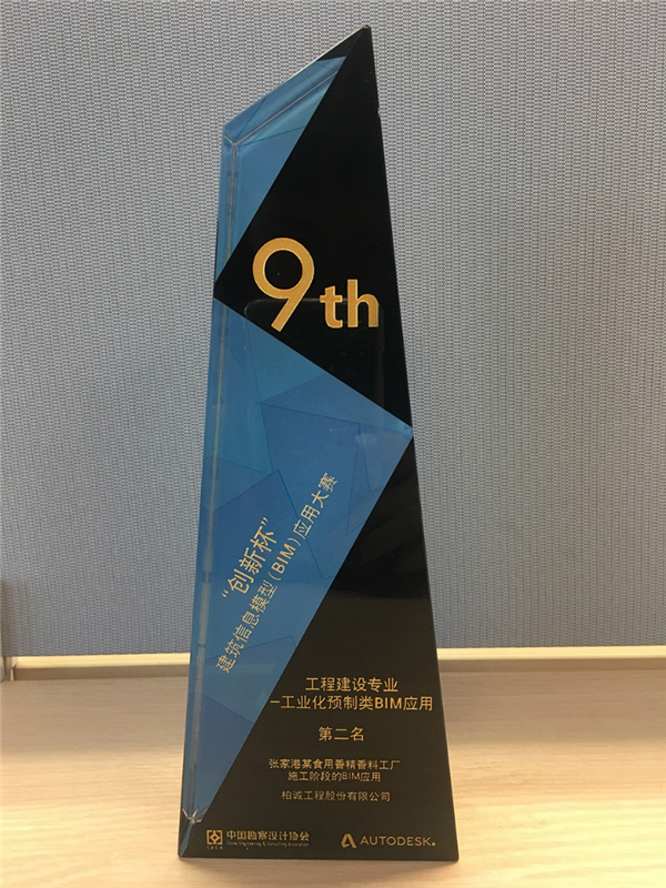 2018年9月,我司張家港某食用香精香料的BIM應(yīng)用項目,在第九屆“創(chuàng)新杯”建筑信息模型(BIM)應(yīng)用大賽中表現(xiàn)優(yōu)秀,喜獲工程建設(shè)專業(yè)—工業(yè)化預(yù)制類BIM應(yīng)用第二名。