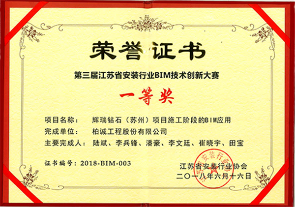 近期,在江蘇省安裝協(xié)會主辦的2018第三屆江蘇省安裝行業(yè)BIM技術(shù)創(chuàng)新大賽中,公司參賽項(xiàng)目“輝瑞鉆石(蘇州)項(xiàng)目施工階段的BIM應(yīng)用”喜獲一等獎,特此通報。